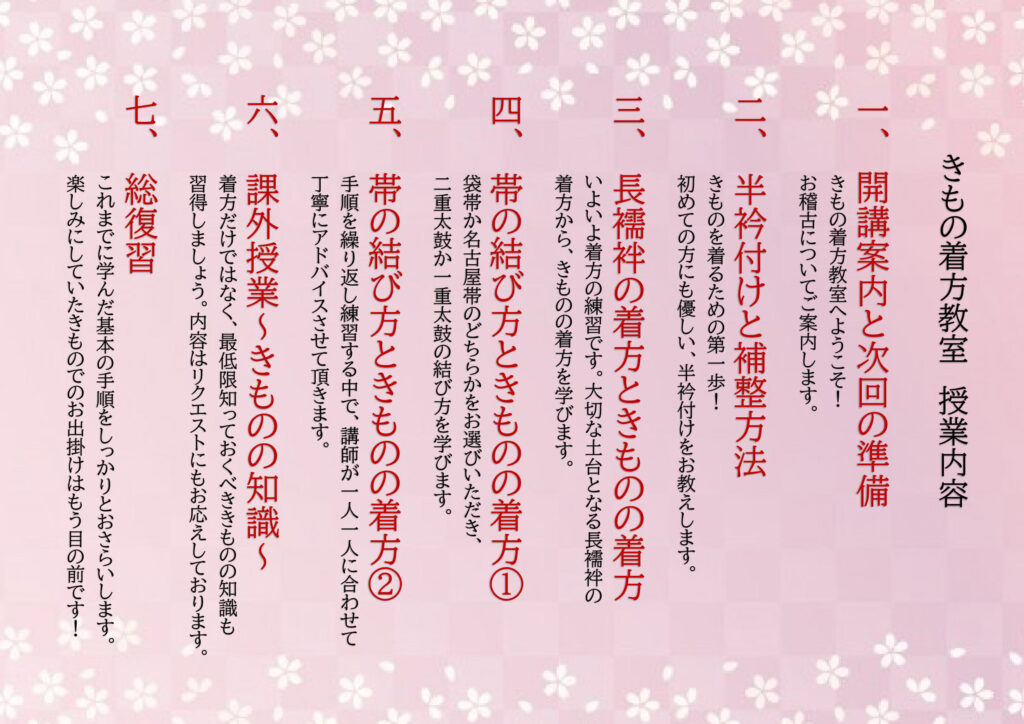 きもの着方教室では随時無料体験会を実施しております。きものを通じて楽しいひとときを体感ください。